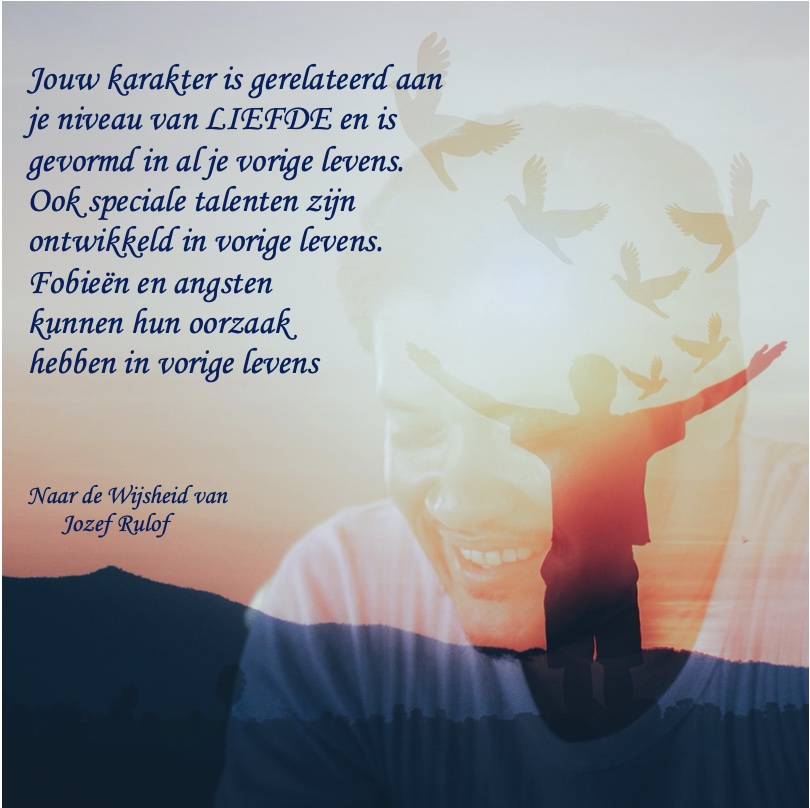 Zo is jouw karakter, dat direct gerelateerd is aan jouw niveau van bewustzijn en LIEFDE, gevormd door vele ervaringen in vorige levens.